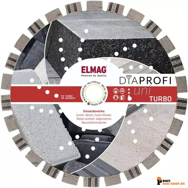 Bestellen Sie die ELMAG Diamant-Trennscheiben DiaProfi-Diamantscheibe UNI-TURBO Ø230mm jetzt unkompliziert und bequem online bei Profi-Bau-Shop.de und lassen Sie sich direkt liefern!