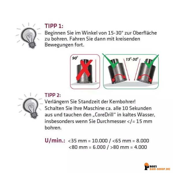 • Für präzise Kernbohrungen auf Winkelschleifern