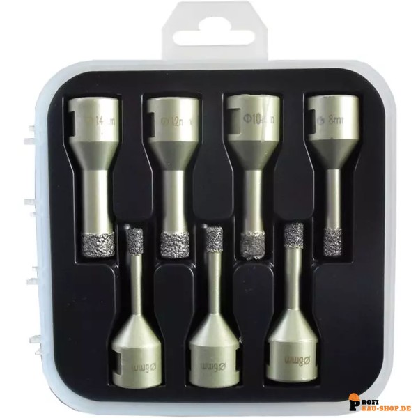ELMAG DiaProfi-Kernbohrer-SET - mit je 2x Ø6mm und Ø8mm, und je 1xØ10mm, 1xØ12mm und 1xØ14mm Aufnahme: M14 im Koffer