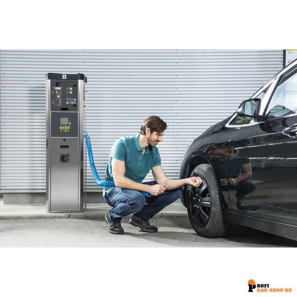Der Kärcher AT-C ist ein geeichter Reifenfüller für präzise Druckprüfung und -befüllung bis 8 bar. Ausgestattet mit einem elektronischen Münzprüfer, bietet er einen attraktiven Zusatzservice für Ihre Kunden.