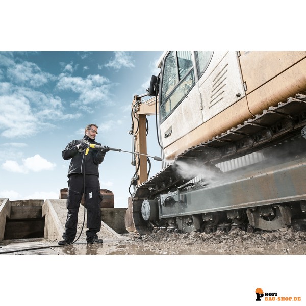 Starke Reinigungsleistung: Mit 160 bar Arbeitsdruck und 1000 l/h Fördermenge bewältigt er auch hartnäckige Verschmutzungen effizient.