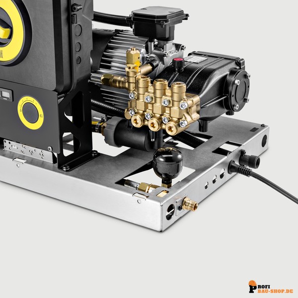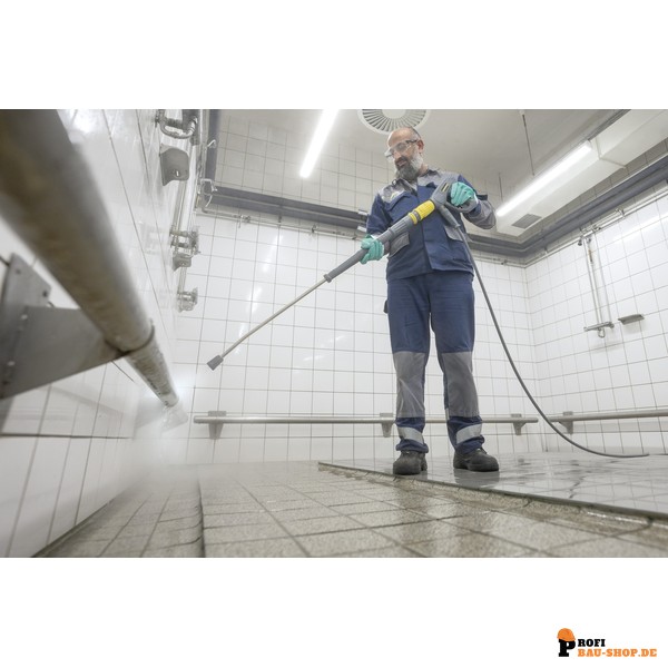 Dieser hochleistungsstarke, stationäre Kaltwasser-Hochdruckreiniger Kärcher HD 17/12-4 St H wurde speziell für die extremen Anforderungen im Dauereinsatz in der Lebensmittelindustrie, Landwirtschaft und anderen industriellen Umgebungen entwickelt. Mit einer beeindruckenden Förderleistung von 1700 l/h und einem Arbeitsdruck von 120 Bar bietet er perfekte Voraussetzungen für die gründliche und effiziente Reinigung. Das Gerät ermöglicht einen Wasserzulauf von bis zu 85 °C und ist dank der Kurbelwellenpumpe mit Messing-Zylinderkopf sowie Gehäuse und Rahmen aus Edelstahl äußerst robust und langlebig. Ein integrierter Wasservorlagebehälter mit Trockenlauf- und Entkalkungsschutz, inklusive Leermeldeanzeige, gewährleistet hohe Betriebssicherheit und verhindert Kalkablagerungen. Zudem verfügt der Hochdruckreiniger über eine Reiniger-Ansaugfunktion mit dosierbarem Ventil und separater Leermeldeanzeige. Der 4-polige, langsam laufende E-Motor sorgt für eine außergewöhnlich lange Standzeit, während die benutzerfreundliche Installation, Bedienung und Wartung sowie die elektronische Überwachung für maximalen Komfort und Sicherheit im Arbeitsalltag sorgen. Ein umfassendes Zubehörangebot, das an jeder Entnahmestelle wählbar ist, rundet das Paket ab.