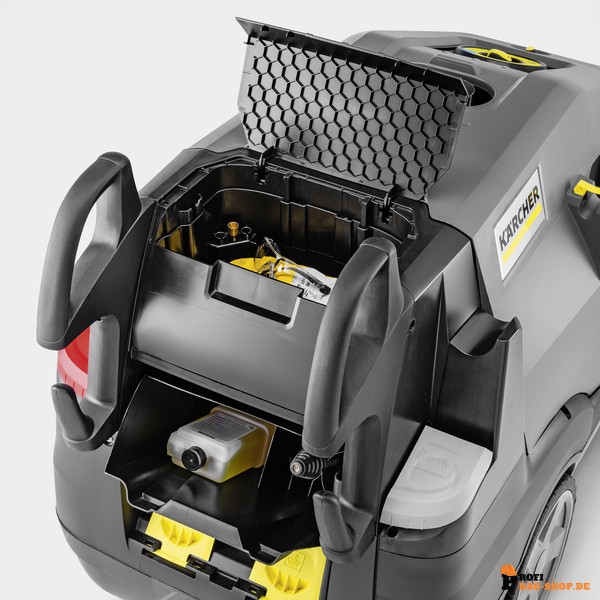 Als eines der leistungsstärksten Geräte der Superklasse von Kärcher überzeugt der Heißwasser-Hochdruckreiniger HDS 13/20-4 S mit besten Reinigungsergebnissen unter härtesten Einsatzbedingungen. Hochwertige Komponenten wie der langsam laufende, 4-polige, wassergekühlte Elektromotor sowie die robuste 3-Kolben-Axialpumpe mit Keramikkolben stehen für ein Maximum an Qualität und Langlebigkeit. Die sparsame eco!efficiency-Stufe ermöglicht dabei höchste Wirtschaftlichkeit durch eine Brennstoffreduzierung von 20%. Die hohe Anwenderfreundlichkeit wird durch einfache Bedienung und Wartung, ein ergonomisches Design und komfortablen Transport unterstrichen. Das üppige Ausstattungspaket umfasst zudem die kraftsparende EASY!Force Advanced-HD-Pistole mit Servo Control, ein 1050 mm langes Strahlrohr mit patentierter Düsentechnologie, optimierte Brennertechnik, 2 Reinigungsmitteltanks, umfangreiche Sicherheitstechnik und zeitsparende EASY!Lock-Schnellverschlüsse.