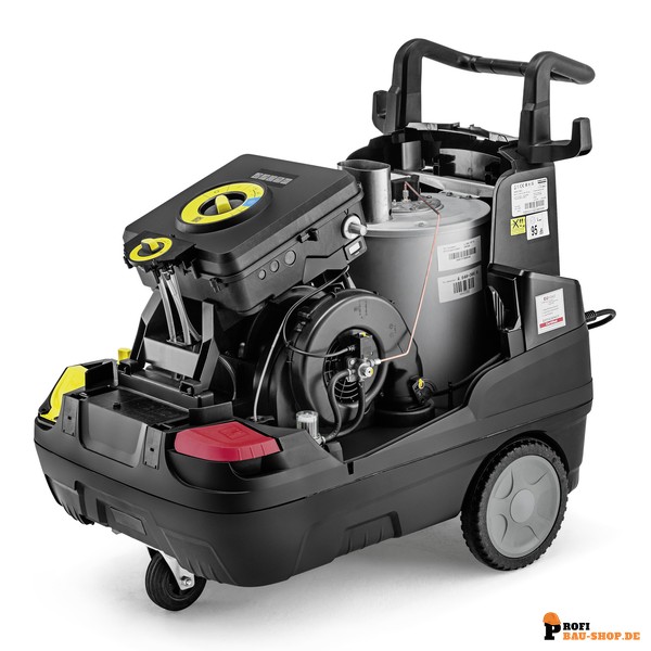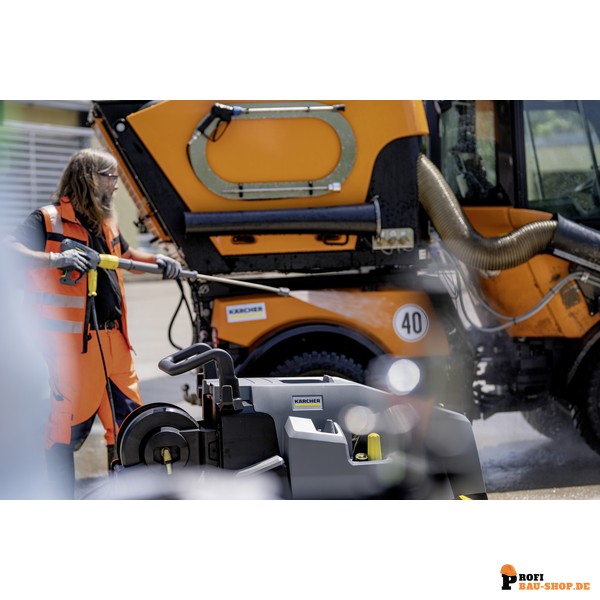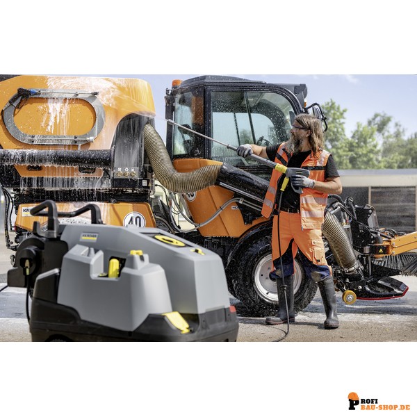 Höchste Reinigungsleistung: Leistungsstärkster 3-phasiger Heißwasser-Hochdruckreiniger der Kompaktklasse mit Dampfstufe für effektive Schmutz- und Schmierstoffentfernung.