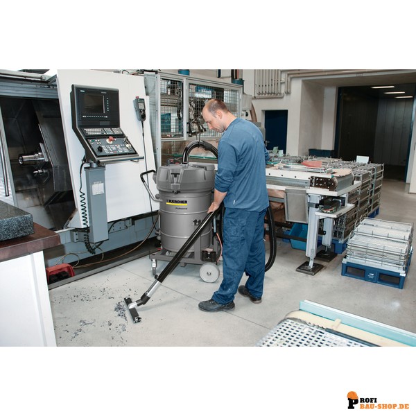 Der Kärcher IVR-L 100/24-2 Tc Dp ist ein speziell entwickelter, wechselstrombetriebener Flüssigkeits- und Spänesauger, der zum effizienten Aufsaugen mittlerer Mengen Öle, Kühlemulsionen sowie feiner und leichter Metallspäne in industriellen Umgebungen konzipiert wurde. Seine leistungsstarke Zweiturbinenlösung gewährleistet mit einer Aufnahmeleistung von 2,4 kW und geringem Arbeitsgeräusch eine konstant hohe Saugleistung. Ein waschbarer und langlebiger Taschenfilter ermöglicht dabei einen ununterbrochenen Betrieb, während ein optionaler Siebkorb eine effektive Trennung von flüssigen und festen Saugmedien sicherstellt. Die Entleerung der gesaugten Flüssigkeiten aus dem 100-Liter-Sammelbehälter erfolgt komfortabel über einen Ablassschlauch, wobei eine Füllstandsanzeige Überfüllungen zuverlässig verhindert. Für ein noch schnelleres Ablassen bis zu einem Höhenunterschied von 6 Metern steht eine integrierte, stufenlos einstellbare Fasspumpe zur Verfügung. Das durchdachte Entleerungssystem mit Kippfahrgestell ermöglicht eine sichere und kraftschonende Kippentleerung mittels Abrollmechanismus oder alternativ den Einsatz eines Hubstaplers oder Krans.