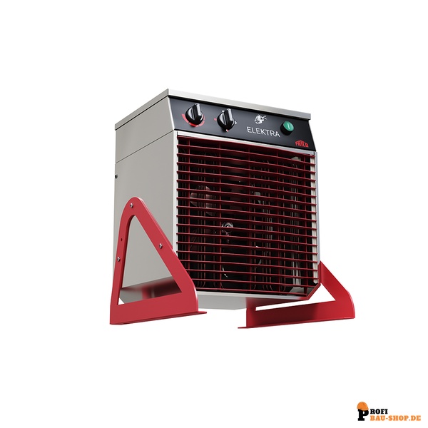 Der Elektra F ist konsequent für den mobilen Einsatz konzipiert. Ein stabiler Tragegriff auf der Rückseite erleichtert den Transport. Das 1,8 Meter lange Anschlusskabel ist mit einem CEE-Stecker ausgestattet und sorgt für einen sicheren Anschluss. Die Bedienung ist denkbar einfach über den integrierten Thermostat (0 bis +35 °C) und einen Leistungsschalter zur Wahl der Heizstufe.