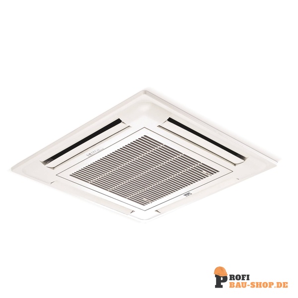 Dank der geringen Bauhöhe passt die Kassette in nahezu jede Zwischendecke. Die Luft wird gleichmäßig über vier Seiten verteilt, was für ein perfektes Raumklima ohne "Hot Spots" sorgt. Eine serienmäßig integrierte Kondensatpumpe und die Möglichkeit, Frischluft zuzuführen oder einen Nebenraum mitzukühlen, unterstreichen die Flexibilität und den professionellen Anspruch dieses Geräts.
