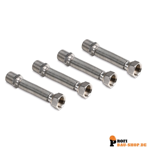 Ausziehbares Edelstahl-Wellrohr in flachdichtender Ausführung zum flexiblen Anschluss der Innengeräte.