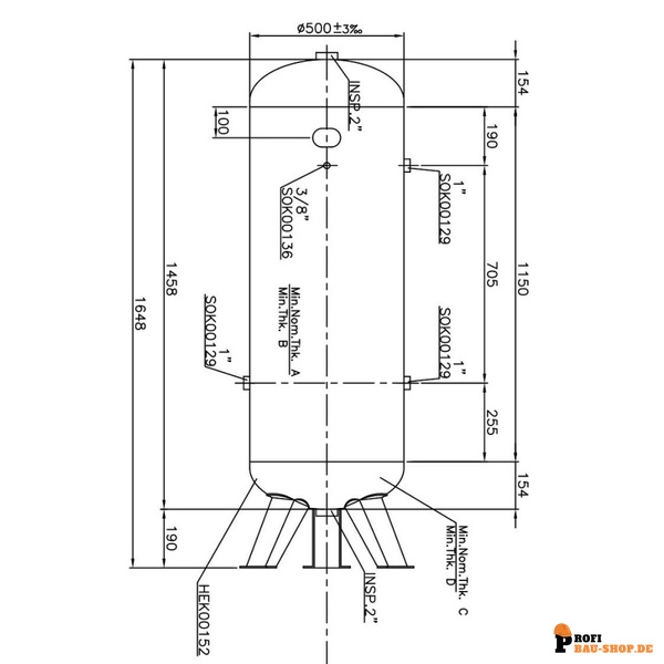 Technische Daten AEROTEC 270 l stehend - 11 bar gepulvert Druckluftbehälter