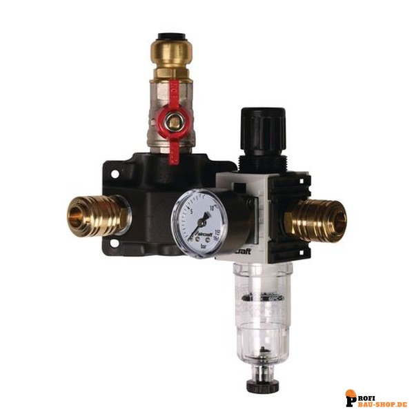 Bestellen Sie die aircraft 12 bar 22 mm Endverteilerdose mit zwei Einhandkupplungen, Absperrhahn und Filterdruckregler jetzt unkompliziert und bequem online bei Profi-Bau-Shop.de und lassen Sie sie sich direkt liefern!