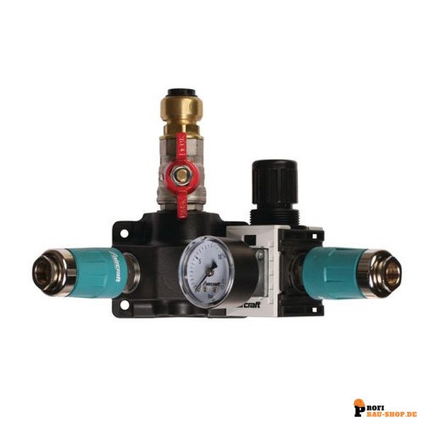 Bestellen Sie die aircraft Endverteilerdose 12 bar 22 mm: Druckluftverteiler mit Sicherheitskupplungen und Druckregler jetzt unkompliziert und bequem online bei Profi-Bau-Shop.de und lassen Sie sie sich direkt liefern!