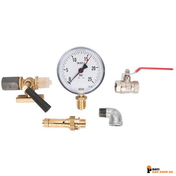 • Komplettlösung: Enthält alle wesentlichen Armaturen, inklusive Sicherheitsventil, Manometer und Kugelhahn.