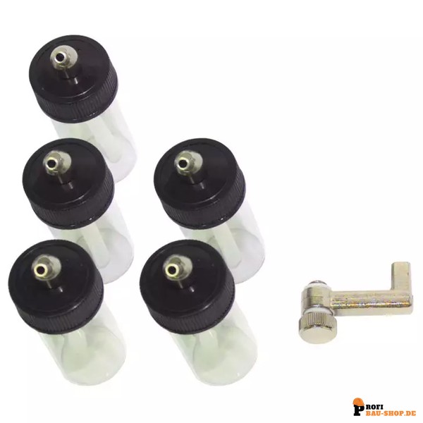 • 5 Farbgläser 20 c³ für Graphique: Ideal für den schnellen Farbwechsel und die Lagerung verschiedener Farbtöne bei der Arbeit mit Graphique Airbrush-Pistolen.