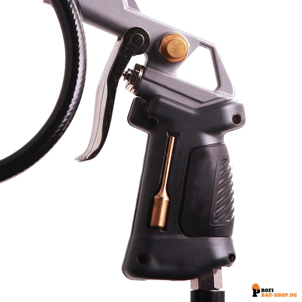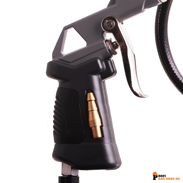 Besonders hervorzuheben sind die durchdachten Features: Eine flexible LED-Lampe, die sich einfach am Schlauch befestigen lässt, sorgt selbst in dunklen Ecken für klare Sicht und erhöht den Arbeitskomfort erheblich. Zudem sind verschiedene Adapter sicher im Griff des Reifenfüllers integriert, sodass sie jederzeit verfügbar und vor Verlust geschützt sind.