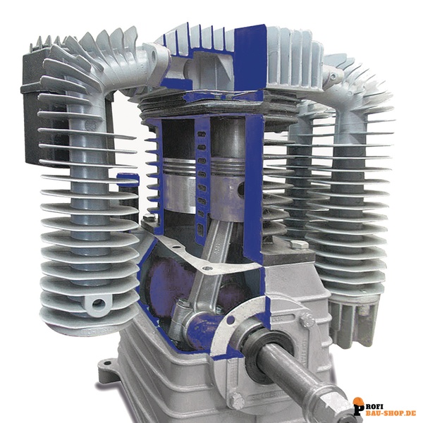 Ein besonderes Merkmal dieses Kompressors ist der integrierte Zusatzlüfter, der zusammen mit Hitzesensoren eine optimale Belüftung und Kühlung des Verdichters sicherstellt, selbst bei Dauerbetrieb. Der Keilriemenantrieb und die niedrige Drehzahl des Aggregats tragen zu einem besonders ruhigen Lauf und einer langen Lebensdauer bei. Ausgestattet mit einem Betriebsstundenzähler und einem präzisen WIKA Glyzerinmanometer haben Sie jederzeit die volle Kontrolle über die Betriebsdaten.