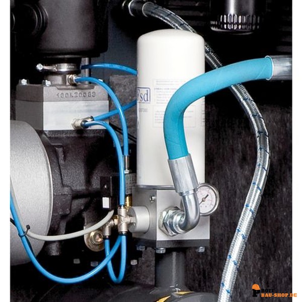 • Geringerer Aufwand für Trocknung und Filtrierung der erzeugten Druckluft durch integrierten Nachkühler