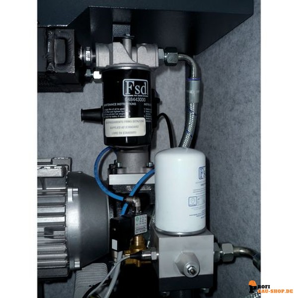 • Robuster Antrieb: Schraubenverdichter mit verschleißfestem Poly V Rippenbandriemenantrieb und einem praktischen Schlitten-Spannsystem.