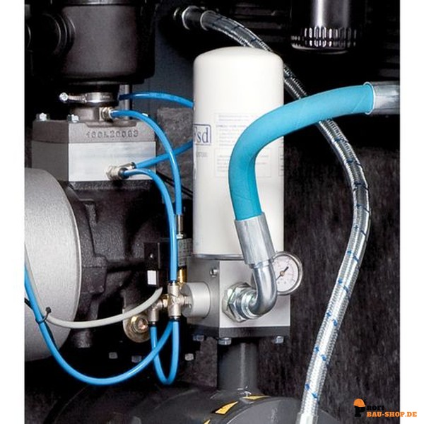 • Integrierter Kältetrockner: Sorgt für zuverlässig trockene Druckluft, schützt Ihre angeschlossenen Werkzeuge und Anlagen vor Korrosion und verlängert deren Lebensdauer.
