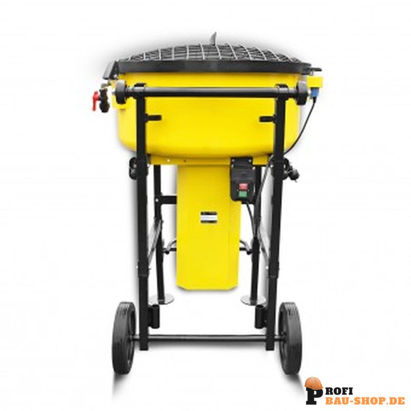 Das Herzstück des BCM-120 ist der leistungsstarke 1500 Watt Elektromotor, der die speziell konstruierten Mischblätter mit einer konstanten Drehzahl von 30 U/min antreibt. Die großzügige Trommel mit einem Durchmesser von 715 mm bietet ein maximales Volumen von 120 Litern, was eine effektive Nennfüllmenge von 100 Litern ermöglicht. Ein besonderes technisches Highlight ist der integrierte Wasseranschluss mit Dosierhahn (1/2" auf 20 mm). Dieser erlaubt eine exakte und gleichmäßige Wasserzufuhr während des Mischvorgangs und erleichtert zudem die anschließende Reinigung der Maschine nach getaner Arbeit erheblich.