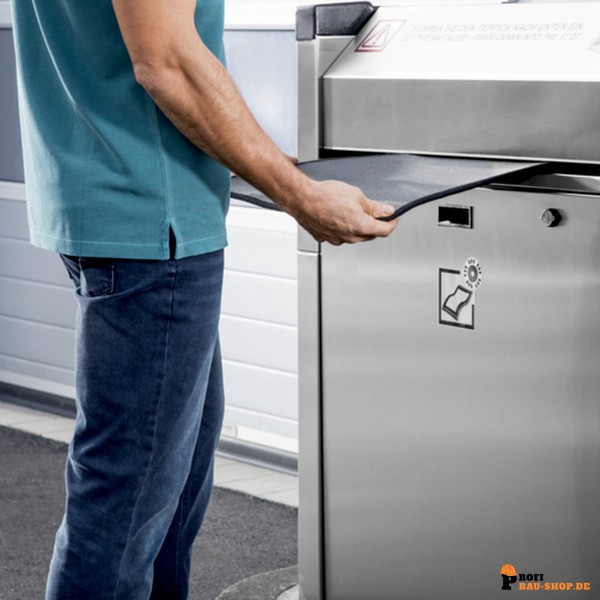 • Extra breiter Einschubschacht: Ermöglicht die effiziente Reinigung von Fußmatten mit einer Breite von bis zu 80 cm.