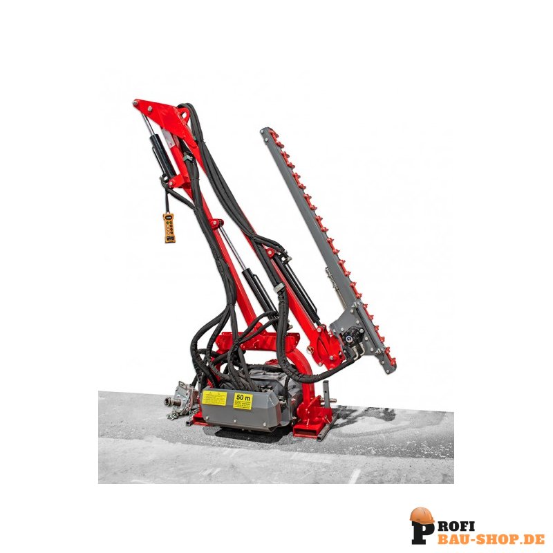 Ein herausragendes Merkmal des Wematik Kadina ist sein eigenständiges Hydrauliksystem. Dies bedeutet, dass für den Betrieb lediglich der Zapfwellenabtrieb Ihres Traktors benötigt wird, was die Kompatibilität erheblich steigert und den Installationsaufwand minimiert. Die präzise Steuerung erfolgt komfortabel per Joystick aus der Traktorkabine, was eine exakte Führung des Schneidwerks ermöglicht und die Arbeitssicherheit erhöht. Mit einer beeindruckenden Reichweite von bis zu 5,5 Metern Höhe und einer seitlichen Auslage von bis zu 4,8 Metern erreichen Sie selbst schwer zugängliche Heckenkronen und breite Grabenränder ohne Probleme. Äste bis zu 22 mm Durchmesser werden sauber und schnell geschnitten, wodurch zeitraubende Nacharbeiten entfallen.
