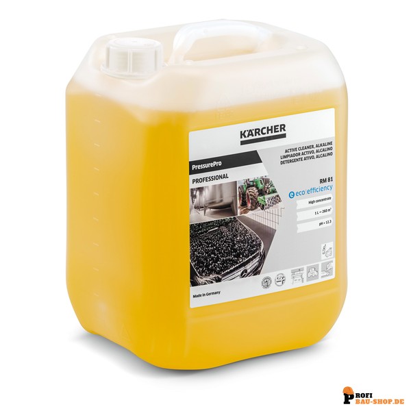 Der Kärcher PressurePro Aktivreiniger RM 81 eco!efficiency (10l) ist ein hochkonzentriertes, alkalisches Reinigungsmittel für Hochdruckreiniger. Er entfernt mühelos starke Öl-, Fett- und Mineralverschmutzungen und ist dank seiner eco!efficiency-Formulierung besonders ergiebig und umweltschonend.