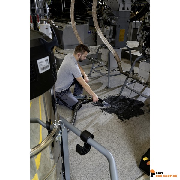 Der Kärcher IVM 60/36-3 H ist ein leistungsstarker, dreimotoriger Mittelklasse-Industriestaubsauger, konzipiert für das universelle Saugen von feinen und groben Feststoffen in anspruchsvollen industriellen Umgebungen. Jeder der drei Motoren ist im Einphasenbetrieb einzeln steuerbar, was eine hohe Flexibilität und maximale Reinigungsleistung gewährleistet. Ausgestattet mit einem großen Sternfilter der Staubklasse M, der komfortabel per Rüttelhebel abreinigbar ist, sowie einem zertifizierten H-Filter, bietet das Gerät höchste Sicherheit beim Saugen gesundheitsgefährlicher Stäube. Das säureresistente Edelstahlgehäuse und der mobile Fahrrahmen mit großen Rädern garantieren Langlebigkeit, Robustheit und einen einfachen Transport.