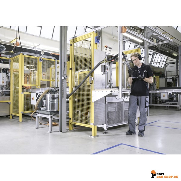 Der Kärcher Industriesauger IVR-B 50/30 ist ein leistungsstarker und platzsparender Beistellsauger, der speziell für die anspruchsvollen Bedingungen in der metall- und kunststoffverarbeitenden Industrie entwickelt wurde. Seine niedrige Bauhöhe prädestiniert ihn für den direkten Einbau in Produktionslinien oder als Ergänzung zu Maschinen. Mit einem langlebigen Seitenkanalverdichter ausgestattet, ermöglicht er einen kompromisslosen Dauereinsatz und saugt zuverlässig (Metall-)Späne, Stanzabfälle und grobe Stäube auf. Der integrierte Patronenfilter im Behälterdeckel gewährleistet dabei eine effiziente Abscheidung, während der robuste Behälter aus lackiertem Stahlblech für höchste Beständigkeit im industriellen Umfeld sorgt. Dank des integrierten Schalldämpfers arbeitet der IVR-B 50/30 zudem mit einem angenehm niedrigen Lärmpegel.