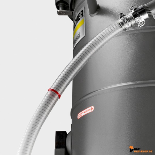 Der IVR-L 100/24-2 Tc von Kärcher bildet die solide Basis der IVR-L 100 Tc-Varianten und ist perfekt konzipiert, um Kühlschmierstoffe (KSS) und Späne in der metallverarbeitenden Industrie effizient aufzusaugen und zu trennen. Dieser kompakt gebaute Industriesauger des Typs Ringler verfügt über ein praktisches Kippfahrgestell und einen großzügigen 100-Liter-Sammelbehälter, womit er sich hervorragend für die Aufnahme großer Mengen Flüssigkeit und staubfreier Feststoffe wie Späne eignet. Der um 360° drehbare Schlauchanschluss am Saugkopf verhindert lästiges Verknoten und ermöglicht ein flexibles Arbeiten rund um das Gerät, während der aktuelle Füllstand jederzeit über den Entleerschlauch sichtbar ist. Die Entleerung kann wahlweise über diesen Schlauch oder das Kippfahrgestell erfolgen, wobei die robuste Bauart mit ölfesten Rollen und Netzkabel eine hohe Lebensdauer selbst unter härtesten industriellen Bedingungen garantiert und zudem eine Stapleraufnahme ermöglicht.