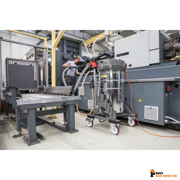 Der Kärcher Industriesauger IVR-L 120/24-2 Tc Me ist eine kompakte und leistungsstarke Lösung, speziell entwickelt für das effiziente Aufsaugen und Trennen von Flüssigkeiten und weitestgehend staubfreien Feststoffen wie Spänen. Sein robustes Design mit Kippfahrgestell und einem großzügigen 120-Liter-Edelstahlbehälter macht ihn zur idealen Wahl für anspruchsvolle Industrieumgebungen, in denen auch korrosive Medien gehandhabt werden müssen. Dank des drehbaren 360°-Schlauchanschlusses wird maximale Bewegungsfreiheit gewährleistet und ein Verheddern des Saugschlauchs effektiv verhindert. Die einfache Füllstandskontrolle über den Entleerschlauch und die vielseitigen Entleerungsoptionen unterstreichen die hohe Benutzerfreundlichkeit dieses Geräts.