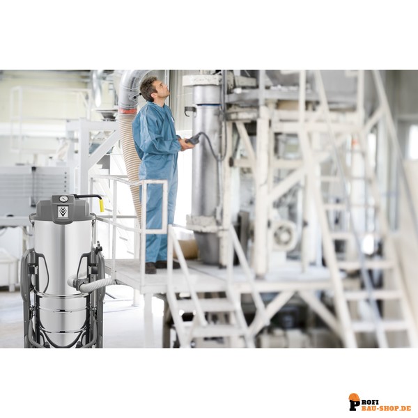Zum Saugen großer Mengen feiner, gesundheitsgefährdender Stäube (Staubklasse M) in der Industrie.