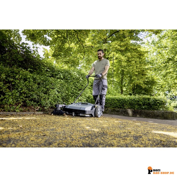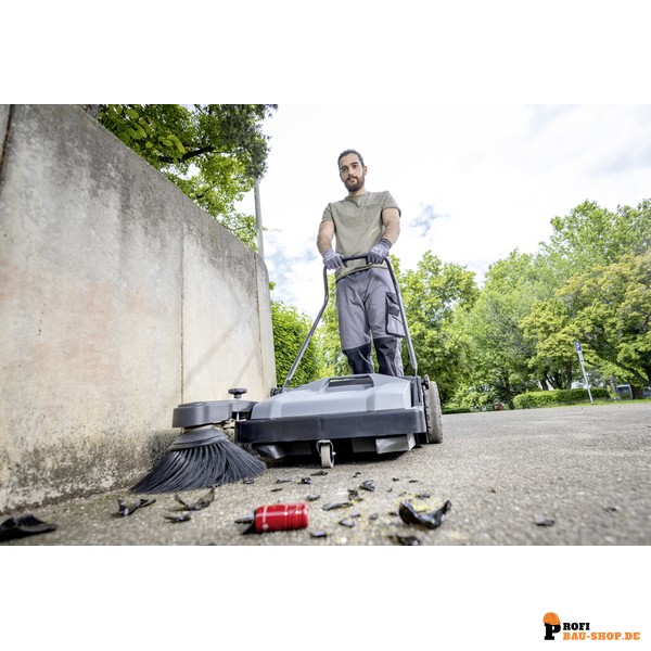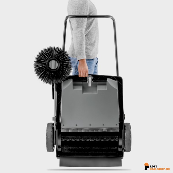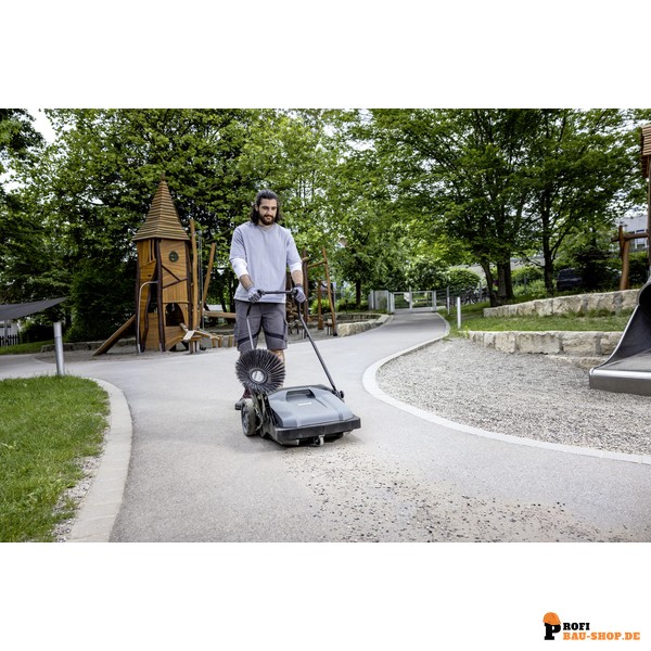 • Geringes Gewicht & Wendigkeit: Die Handkehrmaschine ist leicht transportierbar, auch über Stufen, und zeichnet sich durch eine sehr gute Manövrierbarkeit aus.