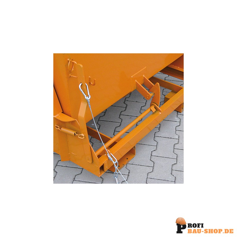 Der günstige Dreh-/Kipppunkt und der ideale Lastschwerpunkt zeichnen diesen Selbstkipper, gefertigt aus 3 mm Stahlblech, aus. Umlaufendes Randprofil. Die Abrollkufen des Kippbehälters verhindern eine Schlagbelastung auf das Hubgerüst des Staplers. Kippbar in jeder Höhe per Seilzug vom Fahrersitz. Kettensicherung gegen unbeabsichtigtes Abrutschen von den Zinken. Stabiler Grundrahmen mit Einfahrtaschen für den Gabelstapler.