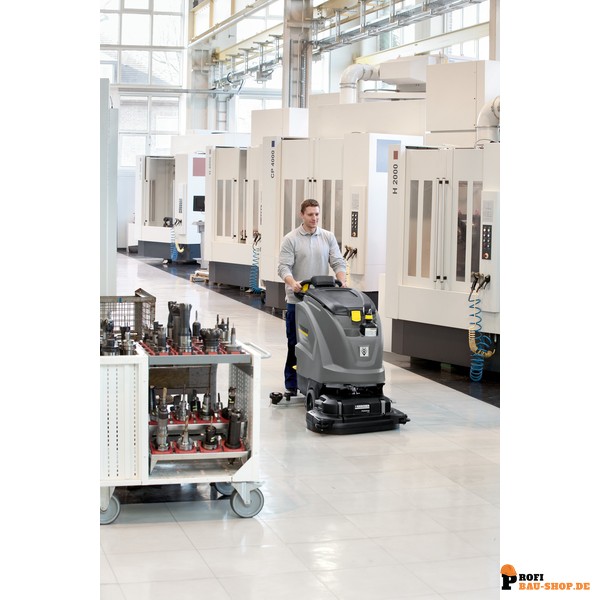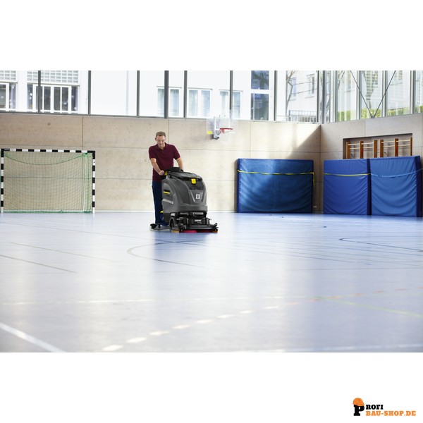Die Kärcher B 60 W Bp ist eine leistungsstarke Nachläufer-Scheuersaugmaschine (60 l) für Flächen von 1.000 bis 2.500 m². Ausgestattet mit Fahrantrieb, KIK-System, Tankspülung, Auto-Fill und einem D65-Scheibenbürstenkopf sowie einer wartungsfreien 170 Ah Batterie.
