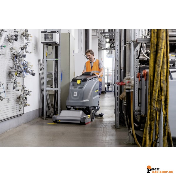 Die Kärcher Nachläufer-Scheuersaugmaschine B 60 W Bp Pack wurde für die gründliche und effiziente Reinigung von Flächen zwischen 1.000 und 2.500 Quadratmetern konzipiert. Ausgestattet mit einem kräftigen Fahrantrieb und einer wartungsfreien 170-Ah-Batterie, bietet sie maximalen Komfort und ein sicheres Handling. Das innovative KIK-Schlüsselsystem schützt vor Fehlbedienung, indem es Zugriffsrechte flexibel vergibt. Mit dem R 65-Walzenbürstenkopf, der eine Arbeitsbreite von 65 cm und eine Bürstendrehzahl von bis zu 1.200 U/min aufweist, ist sie ideal für die intensive Säuberung strukturierter Böden geeignet. Praktische Features wie die eco!efficiency-Stufe für verlängerte Batterielaufzeit, das Tankspülsystem zur einfachen Schmutzwassertankreinigung und die Auto-Fill-Funktion für schnelles Frischwassertankbefüllen runden das Gesamtpaket ab. Der V-förmige Saugbalken garantiert zudem eine rückstandslose Absaugung der Schmutzflotte, selbst bei Kurvenfahrten.