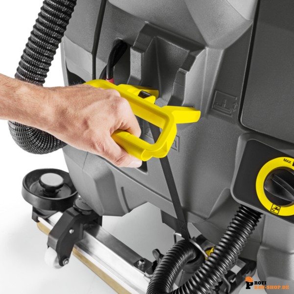 Die Kärcher BD 50/55 C Classic Bp Pack ist eine geräuscharme, leistungsstarke und sehr einfach bedienbare Scheuersaugmaschine. Ausgestattet mit einer wartungsfreien 105-Ah-Gel-Batterie bietet sie eine beeindruckende Laufzeit von bis zu 3 Stunden.