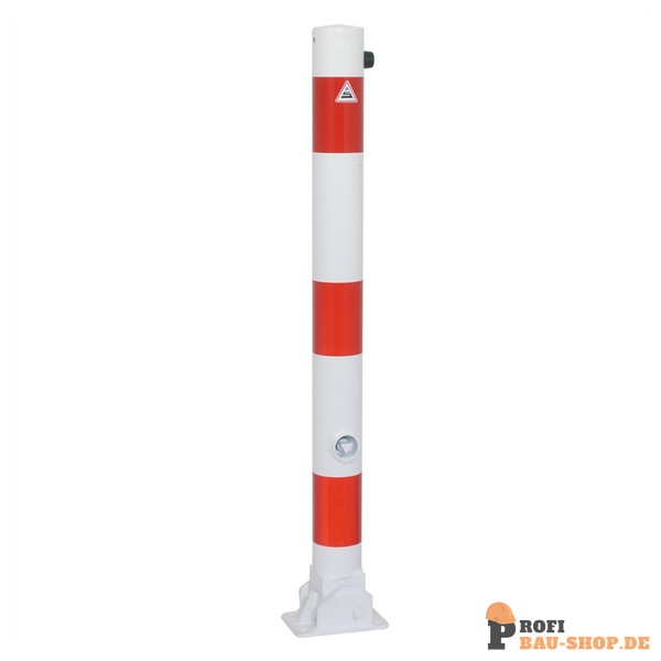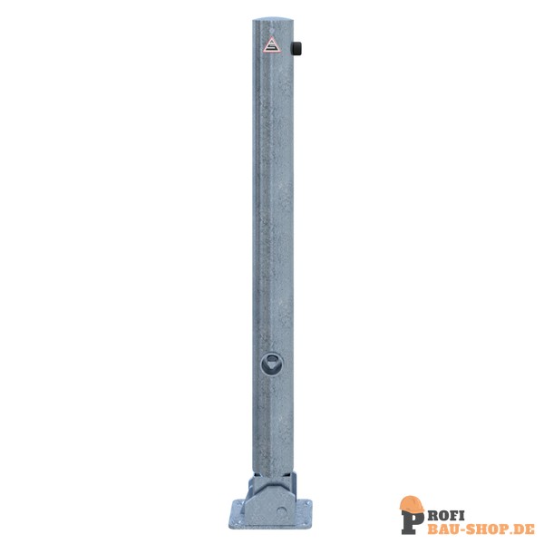 Schake Absperrpfosten Stahlrohr Ø 76 x 2,6 mm umlegbar mit Dreikantverschluss, für Dübelbefestigung mit Bodenplatte 100 x 150 mm, feuerverzinkt, ohne Öse