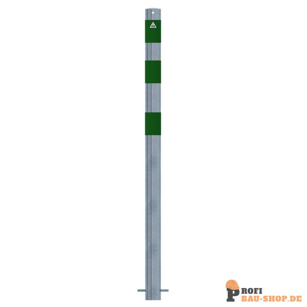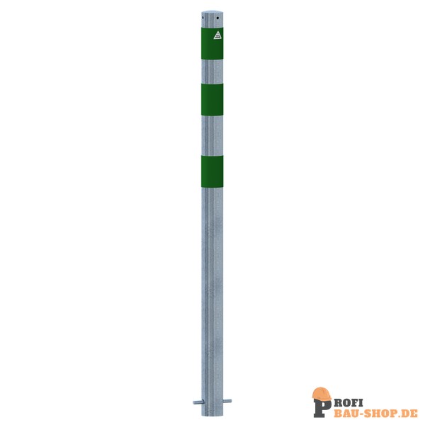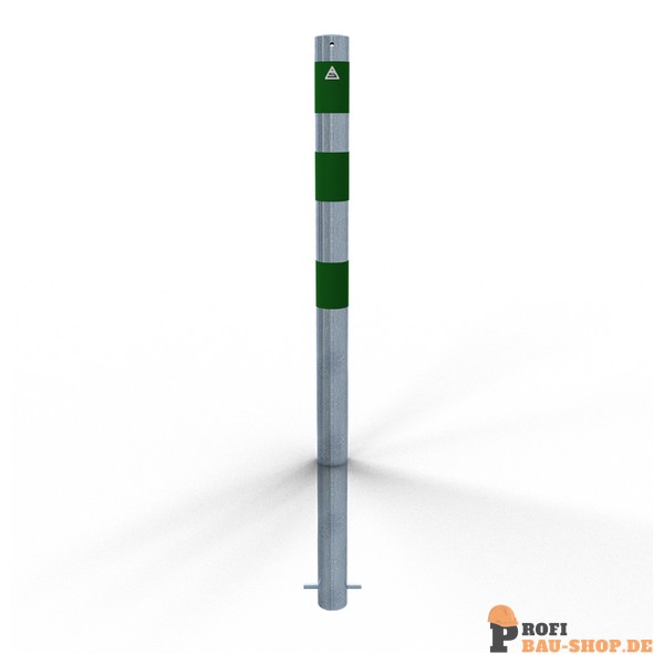 Schake Absperrpfosten als E-Ladesäulenschutz, Ø 76 mm, feuerverzinkt mit 3 grün reflektierenden Streifen Folie Typ RA1/A, zum Einbetonieren, Gesamthöhe 1200 mm