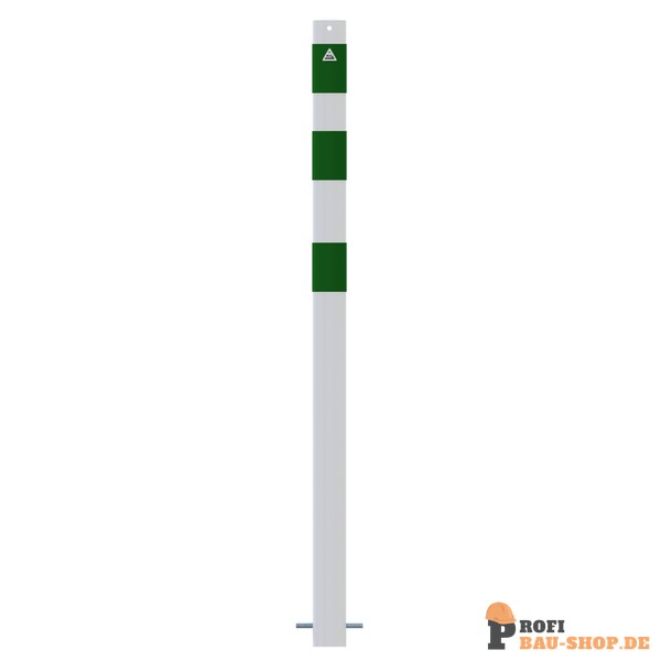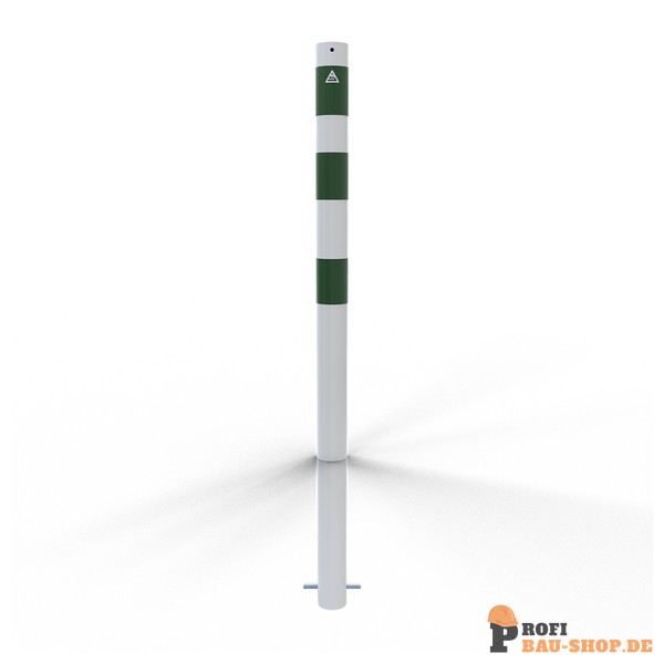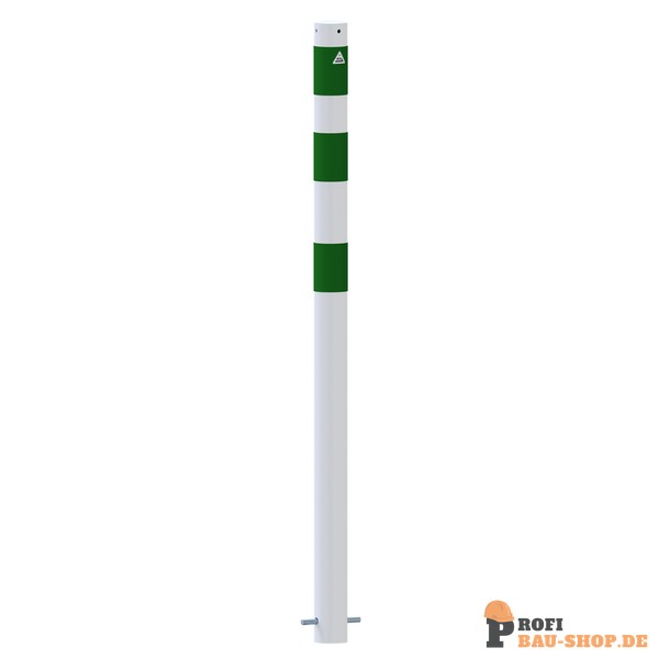 Schake Absperrpfosten E-Ladesäulenschutz, Ø 76 mm, feuerverzinkt, weiß pulverbeschichtet, mit 3 grünen Reflexstreifen RA1/A, zum Einbetonieren, Gesamthöhe 1200 mm