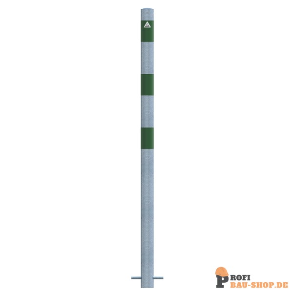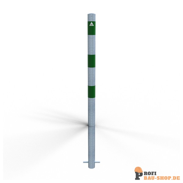 Schake Absperrpfosten als E-Ladesäulenschutz, Ø 60 mm, feuerverzinkt mit 3 grün reflektierenden Streifen Folie Typ RA1/A, zum Einbetonieren, Gesamthöhe 1200 mm