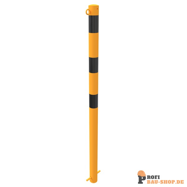 Absperrpfosten Stahlrohr Ø 60 x 2,5 mm mit aufgeschweißter Stahlkappe 900 mm Überflur herausnehmbar, mit Profilzylinderschloss drei Schlüssel, selbsteinrastende Verriegelung, mit Bodenhülse Typ 460.40, ca. 400 mm Unterflur