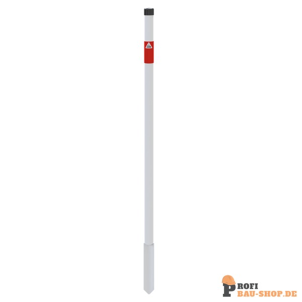 Technische Daten Absperrpfosten Stahlrohr Ø 42 x 2,5 mm ortsfest zum Einschlagen, feuerverzinkt und weiß beschichtet mit rot reflektierendem Leuchtstreifen, ohne Öse