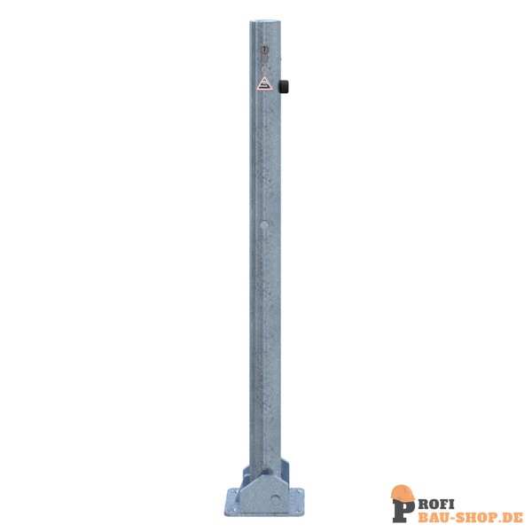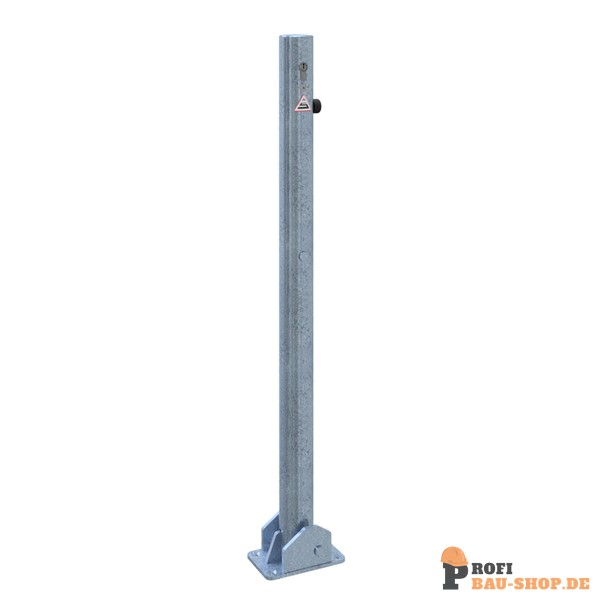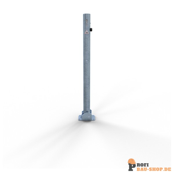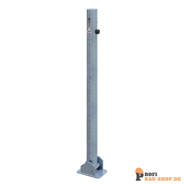 Schake Absperrpfosten Stahlrohr Ø 60 x 2,5 mm umlegbar mit Profilzylinderschloss, für Dübelbefestigung mit Bodenplatte 100 x 150 mm, feuerverzinkt, ohne Öse