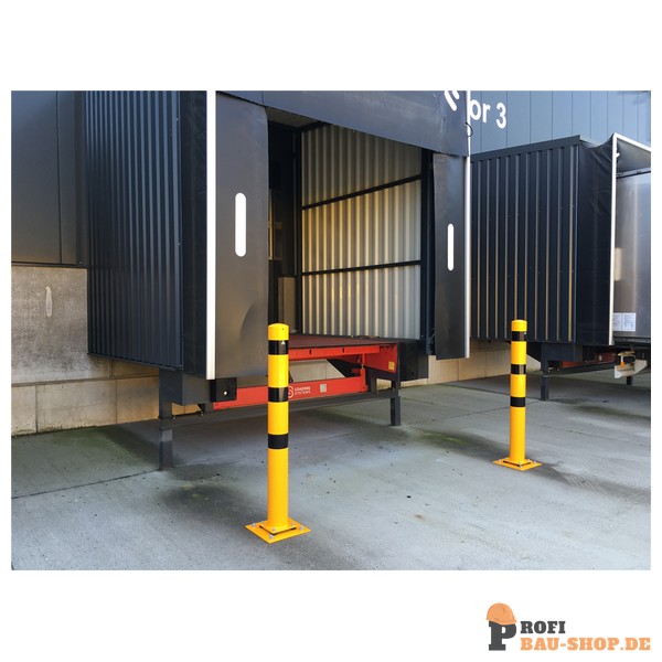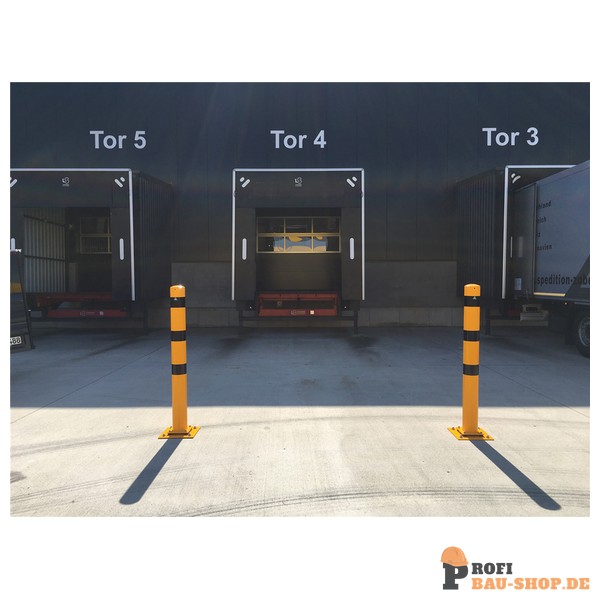 Schake Stahlrohr-Absperrpfosten allseits neigbar gelb / schwarz, Ø 89 mm