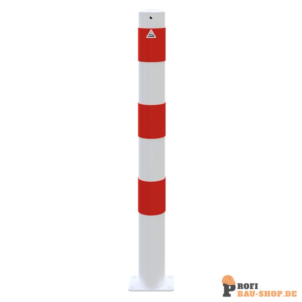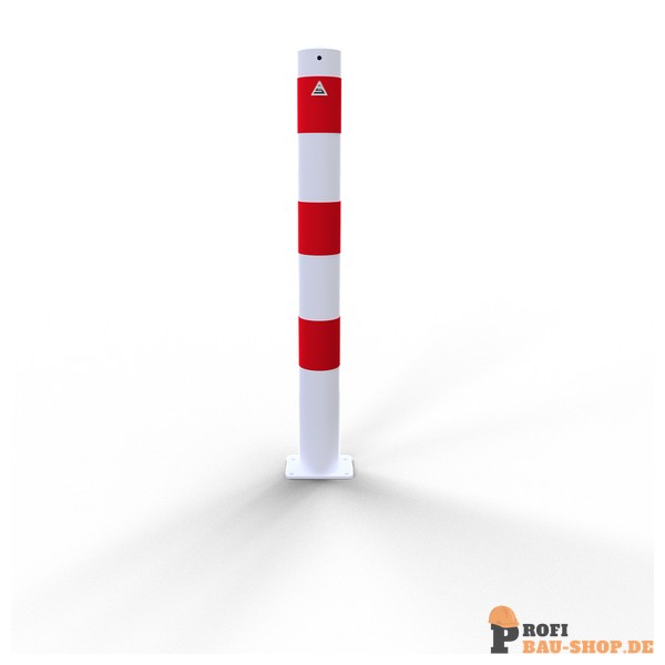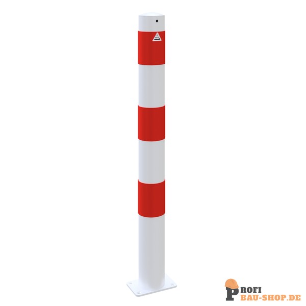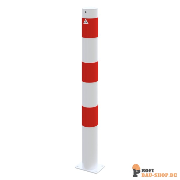 Schake Absperrpfosten Stahlrohr Ø 89 x 2,9 mm ortsfest für Dübelbefestigung, feuerverzinkt und weiß beschichtet mit drei rot reflektierenden Leuchtstreifen, ohne Öse