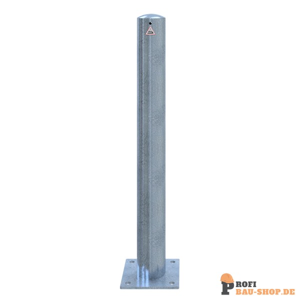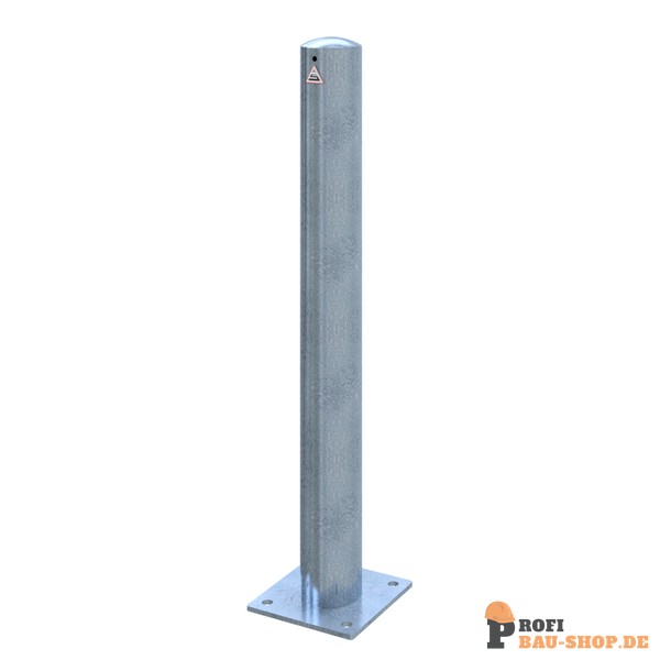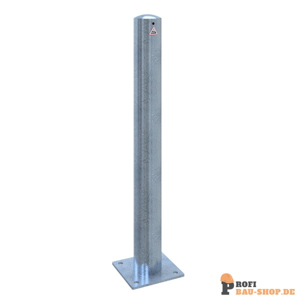 Absperrpfosten Stahlrohr Ø 102 x 2,9 mm mit aufgeschweißter Stahlkappe 900 mm Überflur ortsfest, für Dübelbefestigung mit Bodenplatte 200 x 200 mm