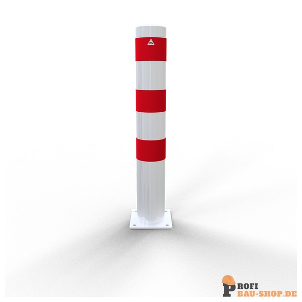 Schake Absperrpoller Stahlrohr Ø 152 x 3,2 mm ortsfest für Dübelbefestigung, feuerverzinkt und weiß beschichtet mit drei rot reflektierenden Leuchtstreifen, Gesamtlänge: 1000 mm,