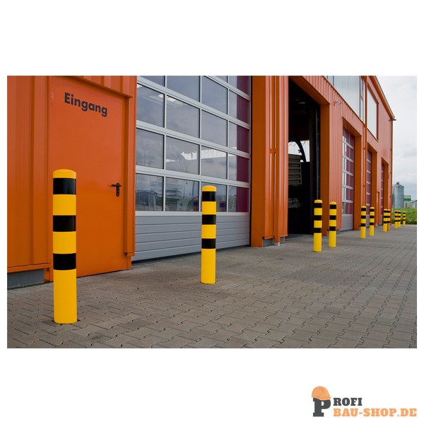 Stahlrohrpoller Ø 193 x 3,6 mm feuerverzinkt und gelb beschichtet mit drei schwarzen Streifen