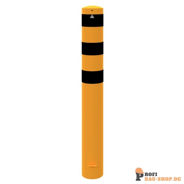 Schake Absperrpoller Stahlrohr Ø 193 x 3,6 mm gelb / schwarz, ortsfest, zum Einbetonieren, Gesamtlänge: 1500 mm, mit aufgeschweißter Stahlkappe