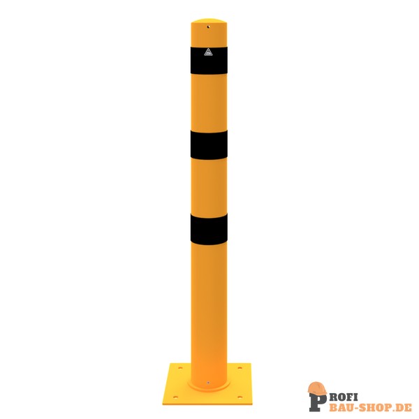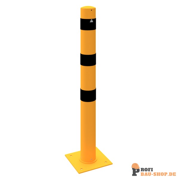 Schake Absperrpoller Stahlrohr Ø 152 x 3,2 mm ortsfest zur Dübelbefestigung, feuerverzinkt und gelb beschichtet mit drei schwarzen Streifen, Gesamtlänge: 1500 mm, mit Signal bei N